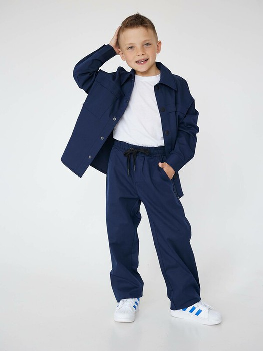Рубашка для мальчика темно-синяя на теплую осень, весну и прохладное лето. Плотная рубашка-куртка с накладными карманами и застежкой на кнопки. Выполнена из хлопкового полотна тенсель. Рубашка свободного кроя, комфортна в носке, не сковывает движения. Отлично смотрится как костюм вместе с нашими брюками Мирон. Характеристики:Ткань:Тенсель 50%, хлопок 50% Плотность 220гр. Производитель: batik