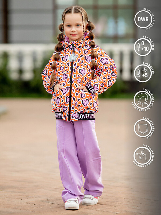 Стильная укороченная куртка-бомбер для девочки Кая на весну и осень. Яркая оранжевая куртка с контрастным принтом. Главная особенность данной модели - это отстёгивающиеся рукава. Легким движением руки куртка трансформируется в жилетку, что позволяет расширить температурный режим для носки.   Особенности:  Водоотталкивающая пропитка материала DWRРегулировка объёма капюшонаВнутренний карманСветоотражающие элементыОтстёгивающиеся рукаваМанжеты рукавов и низ на резинке Карманы по бокам Характеристики:Ткань верха: мембрана Подклад: полиэстерУтеплитель: 60 гр Температурный режим от +10 до -5 СПроизводитель: batik