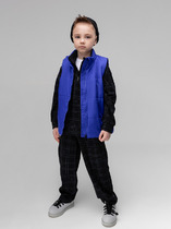 Жилет Кейси для детей серо-синий из комбинированной ткани. Детский жилет из футера и курточной ткани с разъемной молнией. Легкий и теплый жилет на весну и лето без утеплителя. Проймы и горловина из эластичного трикотажа позволяют жилету плотно прилегать к телу и сохранять тепло. Особенности: Сочетание двух тканей и цветов (колор-блок)Регулируемый капюшонНакладные карманы Трикотажный воротникРегулировка по низу Характеристики:Ткань верха: Футер с начесом / курточная ткань Утеплитель: без утеплителя Температурный режим от +8 (с поддевой) до +15 (без поддевы)Производитель: batik