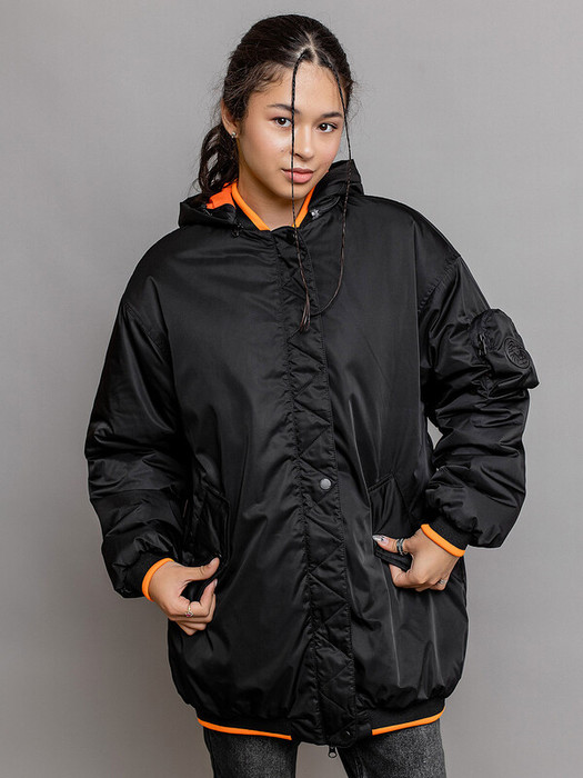 Совместные покупки Каменск-Уральский Детская одежда Ветровки и дождевики — Batik Бомбер для девочки удлиненный Смэш (635-24в) 635-24в-1 Черный/ярко-оранжев