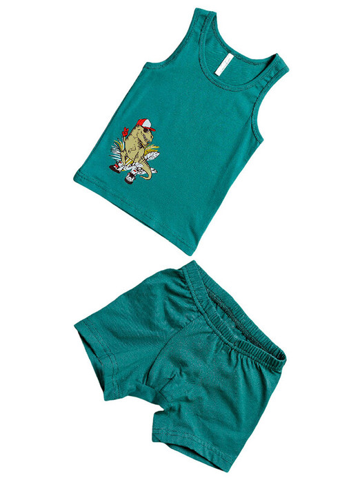 Комплект нижнего белья для мальчика в расцветке хаки: майка и удлиненные трусы-боксеры. Выполнен из высококачественного хлопкового полотна (супрем пенье), обеспечивает мягкость и комфорт на теле ребенка. Майка декорирована ярким рисунком в виде динозавра.Характеристики:Материал: Супрем пенье 92% хлопок 8% эластанПроизводитель: batik
