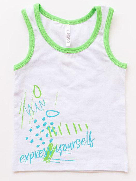 Майка для мальчика трикотажная белая с принтом из супрема пенье. Майка детская выполнена из натурального хлопка с лайкрой - дышащего, гипоаллергенного материала. Классическая модель с широкими бретелями и круглым вырезом не сковывает движений ребенка, очень легкая, приятная к телу и комфортная в носке.Характеристики:Материал: Супрем пенье 92% хлопок 8% лайкра 40/1Производитель: batik