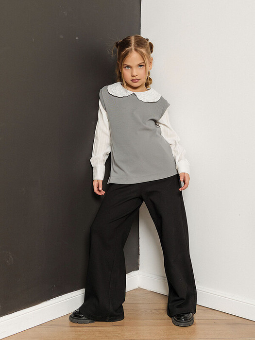 Стильная рубашка-обманка в сером цвете имитирует эффект многослойности: сочетает элегантную рубашку и уютный трикотажный жилет в одной модели. Иллюзия двух изделий создает визуально интересный и стильный образ без лишних слоев. Кружевной воротник добавляет изысканности, а длинные рукава с манжетами завершают лаконичный крой. Приятный серый оттенок делает рубашку универсальной для базового гардероба.Характеристики:Ткань: хлопок 79%, полиэстер 18%, спандекс 3%Производитель: batik