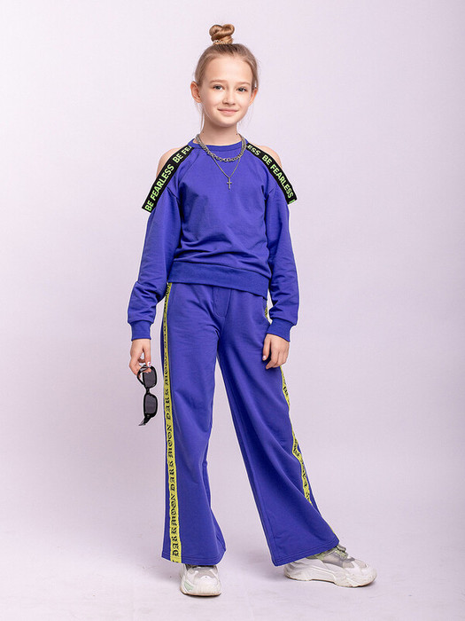 Свитшот для девочки синий со спущенными оголенными плечами.