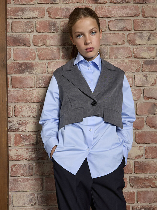 Модный укороченный жилет для девочки голубой с эффектом спущенного плеча. Укороченный крой подчеркивает талию и визуально вытягивает силуэт. Костюмный воротник добавляет строгости и элегантности. Декоративные клапаны создают интересные акценты. Качественный подклад обеспечивает комфорт при носке. Идеально сочетается с рубашками, водолазками и блузками. Прекрасно комбинируется с юбками и брюками. Подходит как для школьного образа, так и для праздничных луков. Спущенное плечо создает модный oversize-эффект. Укороченная длина - главный тренд сезона.Характеристики:Ткань: хлопок 60%, полиэстер 40%Производитель: batik