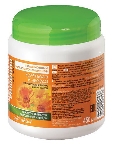 Традиционный БАЛЬЗАМ-КОНДИЦИОНЕР для оздоровления волос и кожи головы Календула и череда основан на растительных настоях череды и календулы, которые оздоравливают волосы и делают их более сильными и красивыми. Бальзам-кондиционер усиливает и дополняет действие профилактического шампуня.