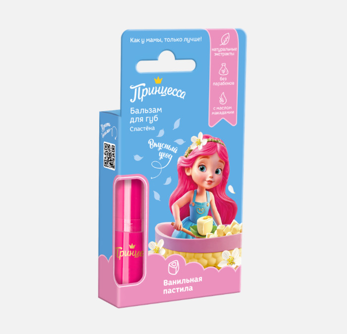 Принцесса предлагает самую вкусную защиту для самых нежных губ! Бальзамы серии Сластена, обладают не только нежным ароматом, но и нежным сладким вкусом. Бренд с высокими стандартами безопасности GMP