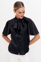 Блузка женская прямого силуэта с притачным рукавом. По переду V-образный вырез с притачной планкой и складкой. Рукав на пате. Низ фигурный.