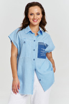 Блузка женская прилегающего силуэта, выполнена из экокожи. Перед с подрезом ниже линии груди, с фигурным вырезом горловины, спинка со швами и застежкой на тесьму-молнию. Рукав одношовный из тонкой, воздушной органзы, по низу рукава манжет.