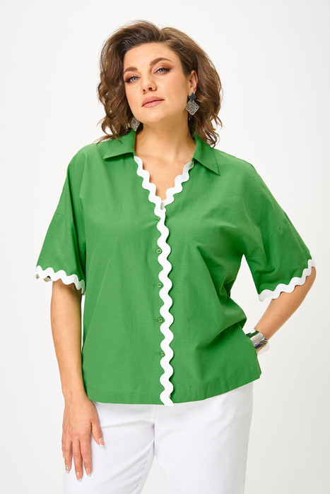 Модная женская блузка с коротким рукавом — находка для тех, кто ценит удобство и элегантность. Лёгкая, свободная модель c V –образным вырезом горловины, с отложным воротником и рукавом на спущенной линии проймы, выполнена из приятного к телу смесового хлопка, идеальна для лета и весны. Благодаря классической посадке и разрезам в боковых швах она скрывает нюансы фигуры, а декоративная тесьма по линии горловины, краю борта и низу рукава украшает силуэт, создавая женственный акцент.