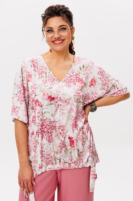 Эта блуза в цвете «тюльпановый рай» — воплощение легкости и стиля, созданная для тех, кто ценит необычные детали и смелые решения. Ее свободный крой дарит комфорт, мягко облегая фигуру, не сковывая движений, а V-образный вырез горловины добавляет элегантности, подчеркивая женственность.