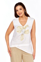 Эта блуза — воплощение изящной женственности и воздушного очарования. Её свободный, струящийся силуэт мягко обволакивает фигуру, даря ощущение лёгкости и невесомости. Фигурный вырез горловины плавными линиями подчёркивает красоту линий, добавляя образу утончённости.