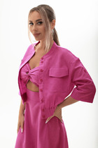 27.03 Vilatte Укороченная блузка с V вырезом из плотного лиоцелла D29.356 темно