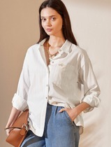 22.03 Vilatte Блузка в полоску свободного силуэта с карманом из эластичного хло
