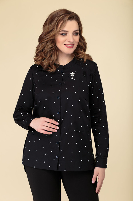 Блуза ДаЛи 5373Б темно-синий+горох