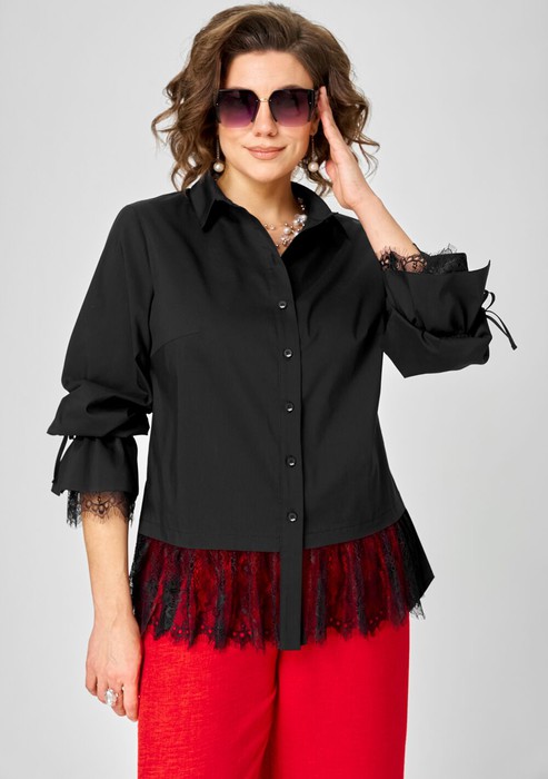 Блуза EVA GRANT 5002-Р черный с кружевом