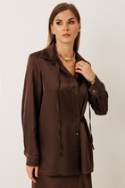 – трансформер: можно носить приталенно, застегнув потайной ремешок, или создать расслабленный образ, завязав внутренние ленты и спустив на плечи.