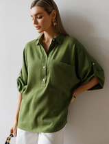 06.04 Vilatte Блузка с цельнокроеным рукавом изо льна с вискозой D29.237 натур