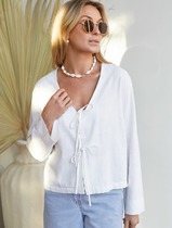 21.04 Vilatte Укороченная свободная блузка с завязками и с V-вырезом изо льна с