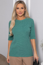Блузка женская прямого силуэта на центральной застежке на петли и пуговицы. Перед с нагрудными вытачками от боковых швов. Спинка цельнокроеная. Рукав втачной одношовный длинный по низу со сборкой и на манжете, застегивающемся на петлю и пуговицу. Горловина на стойке с воротником.