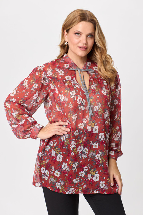 Нежная блузка свободного кроя прекрасно вольется в повседневную жизнь. Изделие хорошо сочетается с брюками и юбками. Блузка выполнена из струящегося шифона. Сборка по всей блузке придаст Вашему образу женственности и нежности. Горловина стоечка украшена тесьмой. Длина изделия по спинке 78 (+/- 1см). Длина рукава от плечевого шва 63 (+/- 1см). Изделие подойдет на рост 170см.