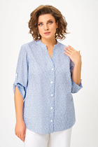 Блузка из хлопковой ткани свободного силуэта. Рукав реглан, длинный, широкий, длина регулируется интересной кулиской с завязками, низ обработан бейкой. Горловина блузки обработана широкой бейкой, переходящей в декоративные детали, которые можно завязать. В верхней части по пореду заложена сборка. Низ блузки фигурной формы.