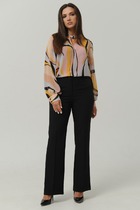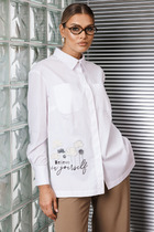 Шикарная блузка из струящейся ткани с матовым блеском, рубашечным воротником и застежкой на петли и пуговицы, нагрудными вытачками. Рукав длинный на манжете, застегивающийся на пуговицы. По боковым швам разрезы.