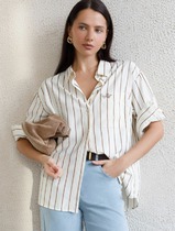 22.03 Vilatte Блузка в полоску свободного силуэта с карманом из эластичного хло