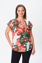 Блузка прямого силуэта с втачным рукавом. Горловина округлая с планкой по переду.  Рукав длинный,  по низу со сборкой и притачной манжетой с застежкой на петлю и пуговицу. Рукав и нижняя деталь спинки из сетки. Низ блузки асимметричный, спинка длиннее переда.   Планка по горловине, низу переда и манжеты выполнены из отделочного материала.