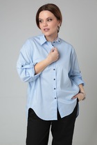 Блузка женская прямого силуэта, с втачным рукавом. Горловина v-образной формы. Отделкой служит воротничок из кружева. Застежка центральная на пять петель и пуговиц. По линии груди вытачки. Рукав длинный расширенный к низу, на притачной манжете с застежкой на петлю и пуговицу. В боковых швах обработаны разрезы.