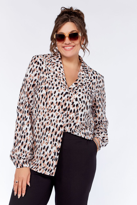 Совместные покупки Каменск-Уральский Женская одежда Блузки, рубашки — Блуза Swallow 771 молочный в бежево-черный принт