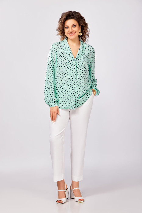Совместные покупки Каменск-Уральский Женская одежда Блузки, рубашки — Блуза Swallow 842.2 Мята в темно-синий горошек