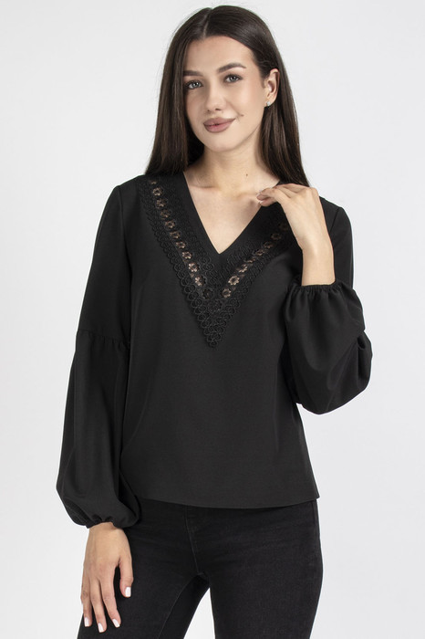 Рукав втачной из двух частей, нижняя часть присборена сверху и снизу.