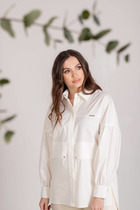 Базовая блузка из шифона, свободного кроя. Рукав длинный, втачной, с резинкой по низу. Особую оригинальность этой блузке придает бант на горловине. Эту нарядную блузку можно комбинировать и с юбкой, и с брюками.