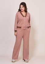 Прямые брюки с поясом на резинке из фактурного трикотажа в рубчик