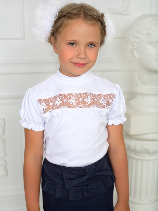 Совместные покупки Каменск-Уральский Детская одежда Блузки — Блузка "Кружевница", кор. рук, белый