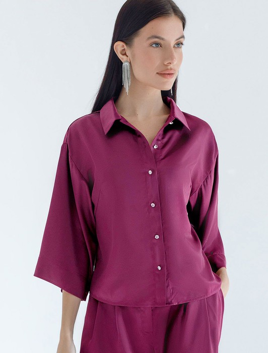 Состав: 97%ПЭ 3%ПУ Плотность: 190 Г/м2Элегантная блузка цвета бургунди на пуговицах выполнена из плотного струящегося сатина, который мягко ложится по фигуре и создает эффектную посадку. Отложной воротник придает образу женственную и изящную нотку. Материал отличается дышащей структурой, благодаря чему комфорт сохраняется даже в течение всего дня. Широкие рукава обеспечивают свободу движений и подходят для полных рук, делая блузку универсальной для разных типов фигур, в том числе для больших размеров. Красивая гладкая фактура материала подчеркивает утонченность изделия, добавляя легкое сияние к любому образу. Благодаря продуманному крою эта рубашка смотрится стильно как в повседневной жизни, так и на особых мероприятиях. Ткань практична, она приятна на ощупь, легко ухаживается и долго сохраняет первоначальный вид даже после многократных стирок и активной носки.