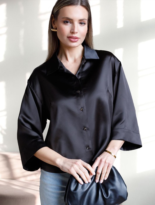 Блузка с короткими рукавами из плотного струящегося сатина