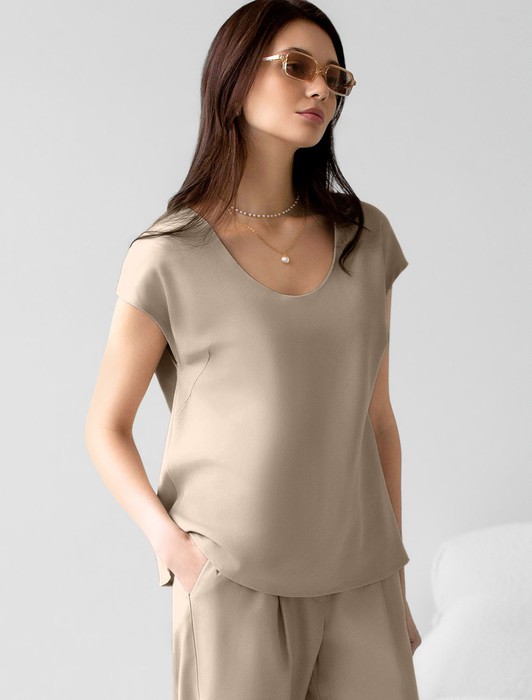 — Блузка с U вырезом скроенная по косой из плотного лиоцелла