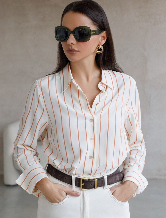 — Блузка свободного силуэта в тонкую полоску из эластичного хлопка