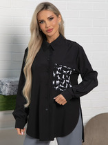 Блуза женская из гладкокрашеного тканого полотна, прямого силуэта, с горловиной овальной формы и цельнокроеными рукавами. Горловина окантована основным материалом, в боковых швах небольшие разрезы.