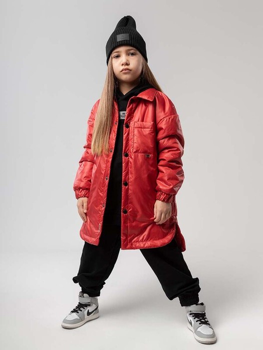 Демисезонный детский удлиненный бомбер. Материал куртки Fitsystem, влагозащитный, воздухообменный и ветрозащитный. Внутри изделия легкий гипоаллергенный современный утеплитель Hetta micro, надежная защита от холода при минимальном объеме, сохраняет упругость и форму после многократных стирок. Детали: рукава на манжетах, накладной карман, карманы в боковых швах, застежка - кнопки. Материал верха: Fitsystem 100% полиэстер, утеплитель Hetta micro 100 г/кв.м, подкладочный материал кулирная гладь 100% хлопок