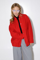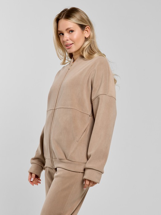 Куртка-бомбер – молодежная из гладкокрашенного трикотажного полотна «дабл-флис» (двухсторонний флис) прямого силуэта, свободная, с длинными втачными рукавами, горловиной овальной формы, обработанной втачной планкой, центральной бортовой застежкой на тесьму «молния». Полочка и спинка состоят из двух деталей, низ изделия с притачным поясом, рукава с притачными манжетами. Пояс, планка горловины, манжеты рукавов выполнены из основного материала.