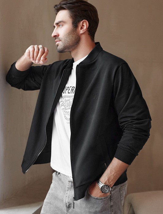 Состав: 75%Хлопок 20%ПЭ 5%ПУ Плотность: 240 Г/м2Бомбер выполнен из футера двухнитки с эластаном. Застежка на молнию с наконечником из эко-кожи. Спереди лаконичная вышивка с буквой V в тон изделия. Модель дополнена карманами и фирменным металлическим логотипом бренда. Сочетается в костюме с брюками U44.005