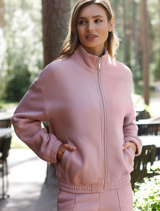 Состав: 80%Хлопок 20%ПЭ Плотность: 320 Г/м2 Размер товара на первом фото: 42Теплый бомбер пыльно-розового цвета на молнии из футера трехнитки с начесом создан для максимального комфорта в любую погоду. Благодаря натуральному материалу и внутреннему мягкому начесу, повседневный бомбер приятно прилегает к телу и сохраняет тепло даже в прохладные дни. Серебристая фурнитура придает современный акцент, а воротник-стойка защищает от ветра и дополняет стильный внешний вид. Манжеты на рукавах и резинка по низу обеспечивают хорошую посадку по фигуре, предотвращая проникновение холода. Карманы позволяют удобно разместить необходимые мелочи или согреть руки во время прогулок. Спортивный бомбер отличается прочностью ткани, не теряет форму после стирки и долго сохраняет аккуратный первоначальный внешний вид. Модель отличается спущенной линией плеча, что обеспечивает удобную посадку и подчеркивает естественные контуры тела.