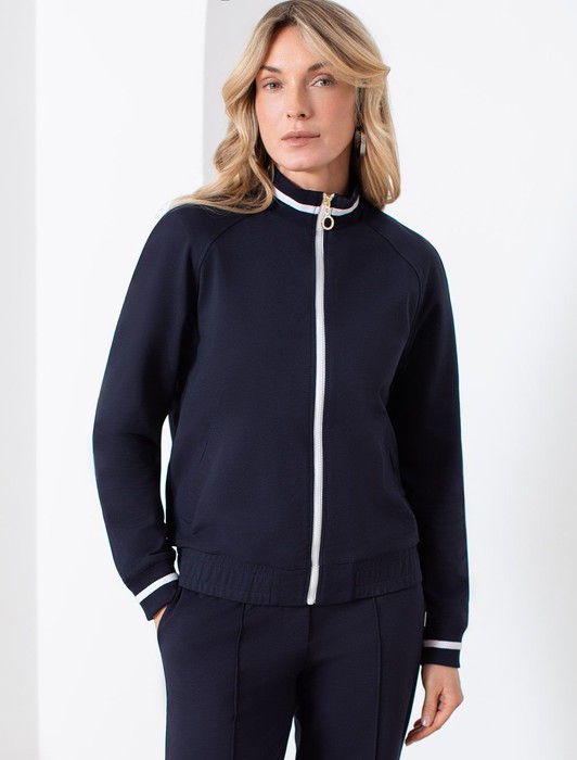 Состав: 95%Хлопок 5%ПУ Плотность: 240 Г/м2Бомбер темно-синего цвета среднего объема с застежкой на молнию выполнен из премиального футера двухнитки плотностью 240 Г/м2. Натуральный состав ткани обеспечивает дышащий эффект, мягкость и приятные тактильные ощущения, Эластичный материал позволяет свободно двигаться без стеснения, а также отлично сохраняет форму даже после длительного ношения. Гладкая лицевая сторона придает бомберу опрятный и дорогой вид. Повседневный бомбер отличается аккуратным силуэтом без лишнего объема и универсальной длиной, которая идеально подходит для повседневного образа. Манжеты на рукавах и широкая резинка по низу обеспечивают надежную посадку, сохраняя тепло в прохладную летнюю погоду. Особенность бомбера - контрастные полосы на горловине и манжетах, которые добавляют современный акцент и делают его более выразительным. Представленная размерная линейка позволяет подобрать оптимальный вариант для любой фигуры и размера, на маленький или плюс сайз, обеспечивая свободу движений без компромиссов по стилю. Этот легкий бомбер станет отличным дополнением к базовому или спортивному гардеробу, сочетая практичность и стиль.