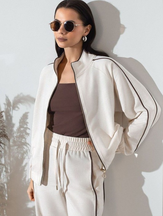 Свободный бомбер темно-синего цвета на молнии выполнен из премиального футера двухнитки плотностью 240 Г/м2. Натуральный состав обеспечивает хорошую воздухопроницаемость, мягкость и приятные тактильные ощущения, Эластичный материал олимпийки позволяет свободно двигаться без лишнего стеснения, а также отлично сохраняет форму даже после длительного ношения. Манжеты на рукавах и резинка по низу обеспечивают надежную посадку, сохраняя тепло в прохладную погоду. Повседневный бомбер отличается универсальной длиной, которая идеально подходит для повседневного и спортивного образа. Контрастные лампасы на рукавах придают образу динамику и визуально вытягивают силуэт, делая модель актуальной. Прорезные карманы по бокам добавляют функциональности, сохраняя при этом стильный внешний вид. Представленная размерная линейка позволяет подобрать оптимальный вариант для любой фигуры и размера, на маленький или плюс сайз, обеспечивая идеальную посадку без компромиссов по стилю. Эта зипка на молнии станет отличным дополнением к