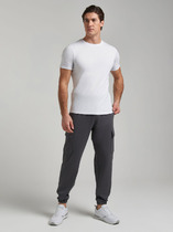 Брюки мужские прямого покроя, с карманами. Пояс на резинке. По бокам и на кармане сзади вставки в виде цветных полосок.