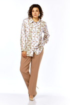 Костюм Элль стиль 2395 бежевый принт, брюки капучино