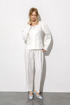 Легкие и струящиеся брюки, сотканные из изысканного арманийского шелка, дарят ощущение невесомой роскоши. Их высокая посадка и мягкие моделирующие защипы у талии создают безупречный, подчеркнуто элегантный силуэт. Свободный, расширяющийся к низу крой обеспечивает невероятную легкость движения и формирует динамичный образ.
